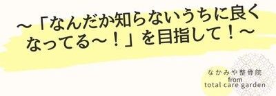 なかみやtop 2025.12.05 *新着情報12/5(月) 臨時休診いたします なかみや整骨院受付時間 受付時間 月 火 水 木 金 土 9:00〜12:30 ● ● ● ● ● ☆ 16:30〜20:00 ● ● - ● ● - ☆8:30〜12:30 定休日:水・土の午後、日曜、祝日 ※予約優先制です。 初診・再診ともに、お電話でご予約ください。 なかみや整骨院 📞 0586-81-4860 トータルケアガーデン・事故治療受付時間 受付時間 月 火 水 木 金 土 9:00〜18:00 ● ● ● ● ● ● 定休日:日曜・祝日 ※予約優先制です 初診・再診ともに、お電話でご予約ください。 トータルケアガーデン予約専門番号 📞 090-5008-1181 予約なしの来院も受け付けておりますが、当日の予約状況により待ち時間が長くなる場合がございます。ご了承ください。 駐車場有:店舗前に停められます店舗前が満車の場合、店舗南側の砂利の駐車場(道路から3台分)もございます。 初めて受診される方へ当院は予約優先制です。初めての方もお久しぶりの方も、まずはお電話にてお問い合わせください。 0586-81-4860ご予約なしでもご来院いただけますが、混雑状況によりお待ちいただく場合がございます。施術所要時間は初回は約30分2回目以降は約10分です。お子様のご来院も歓迎しております、どうぞお気軽にお越しくださいませ
